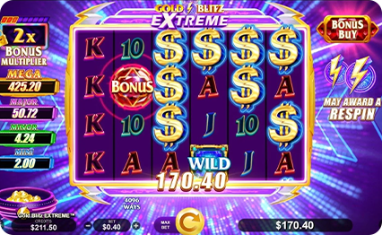 You can buy your way into the Gold Blitz or the Free Spin features. Bonus Buy provides you with the option to choose your bonus experience at a premium cost.